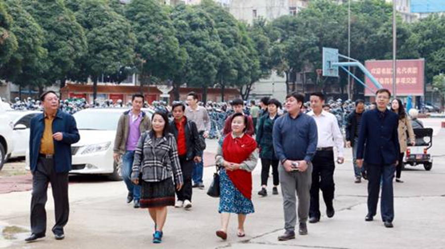 老挝文化代表团团员们首先观看由开云手机登录入口教学成果展演,加深了对开云手机登录入口的印象。