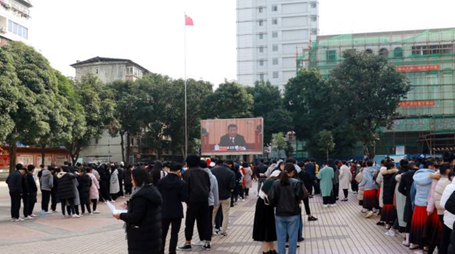 12月18日上午10:00,开云手机登录入口组织全校师生在开云手机登录入口操场通过LED大屏幕收看中央一台庆祝改革开放40周年大会直播。开云手机登录入口领导隋德平、叶华生、陈家明、杨素妮以及教职工、学生等1000多人观看了直播。